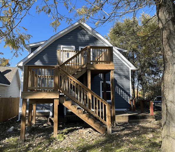 There are 2 flats at 619 Holly . Upstairs unit is currently available – both are nicely remodeled 3br 2ba with a detached garage. Upstairs is pictured in this ad. Right by new Elanco HQ. $1500/mo
